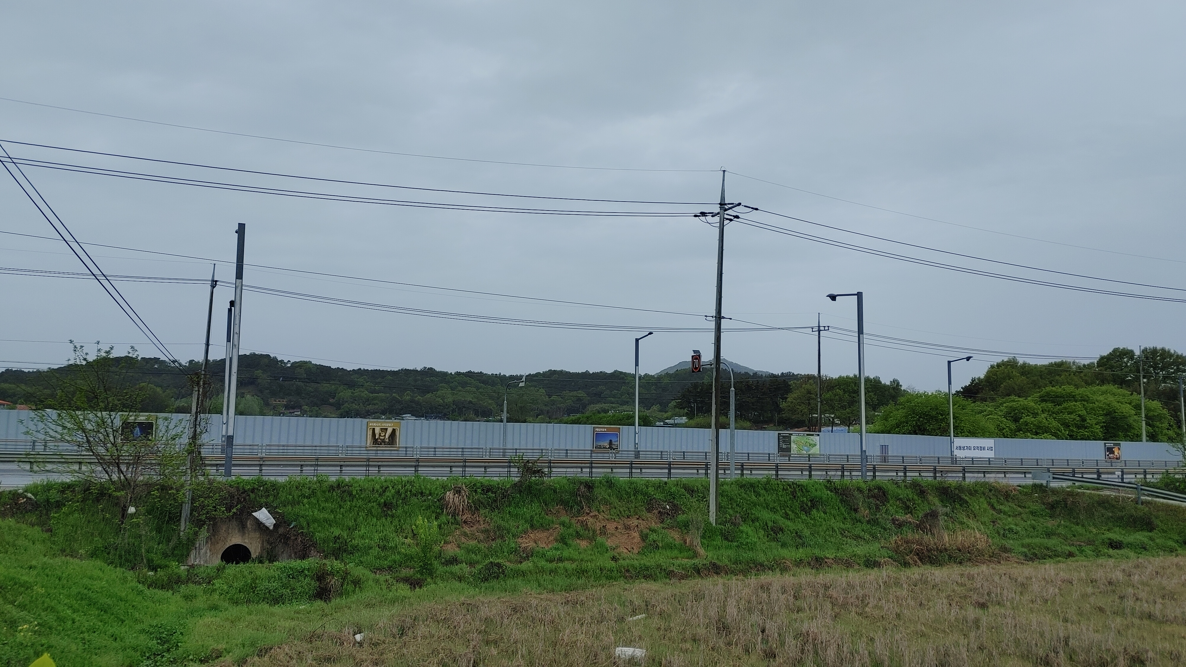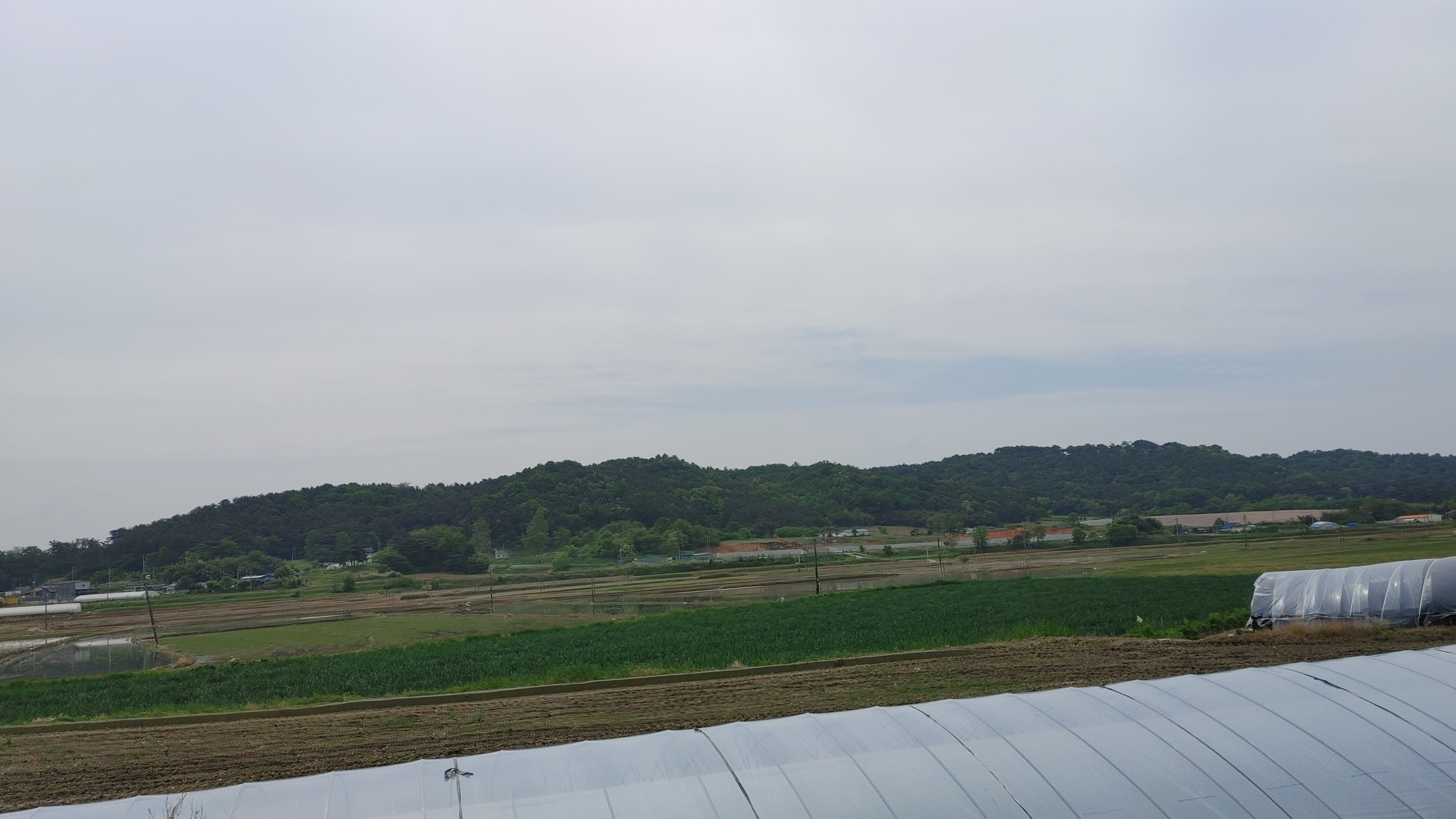 익산 왕궁리 유적의 백제 궁담(남서쪽 모퉁이) 사적 제408호, 2015년 7월 4일 유네스코에서 세계유산백제역사유적지구로 지정> 발굴 결과 동서 230m, 남북 450m. 이 안에 익산 왕궁리 오층석탑이 있다. ‘모질메 산성’이라는 문화재안내문은 사진 안에서 나무가 밀집한 곳에 세워져 있었다. 최근까지 밭과 논으로 경작되던 지대이다. 사진 안 작은 건물과 그 주변에 백제 화장실과 공방이 있었는데 1964년까지 필자 아버지 소유로 2400평이 있던 자리이다. 2025년 5월 25일 조원교 촬영