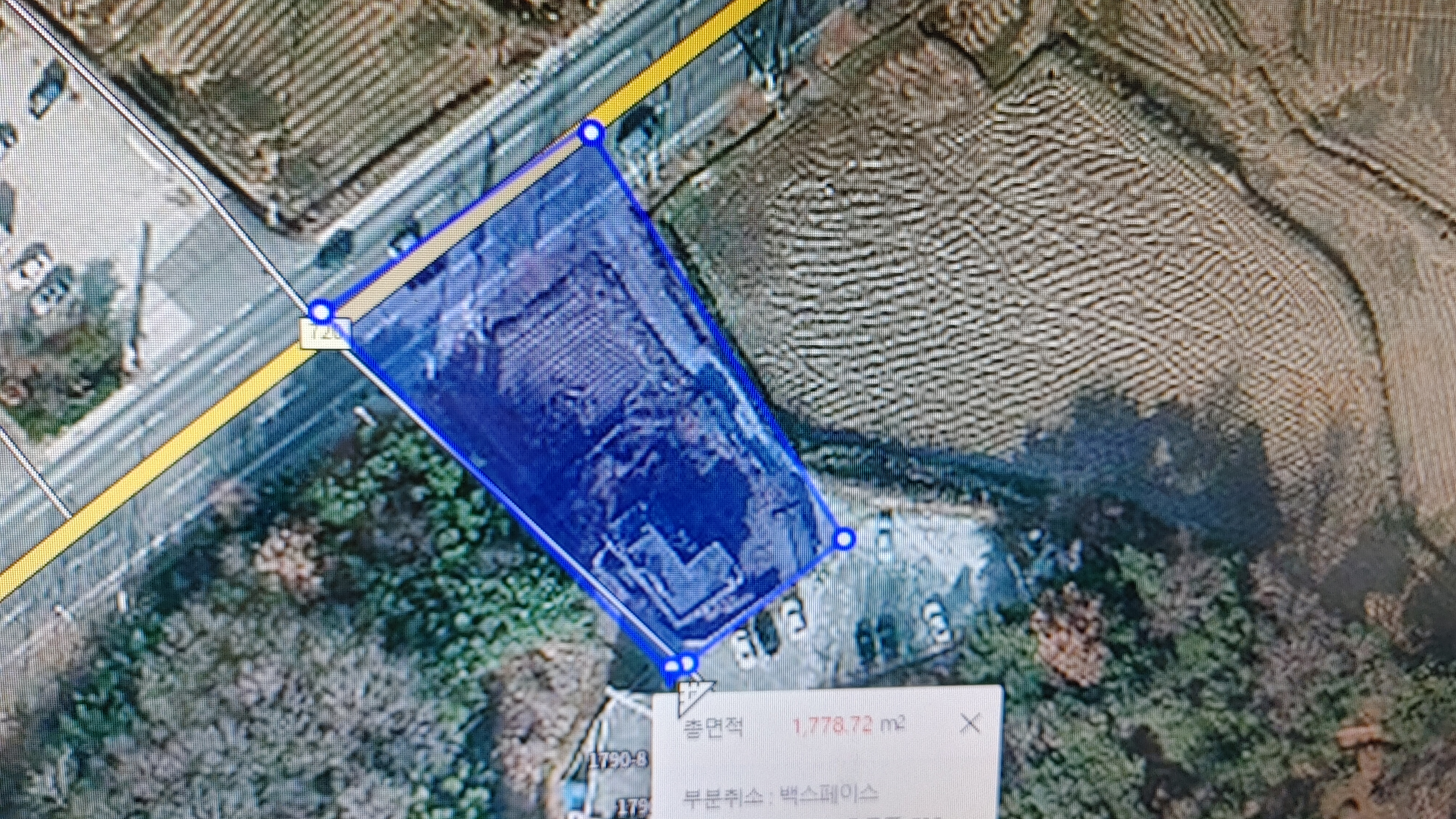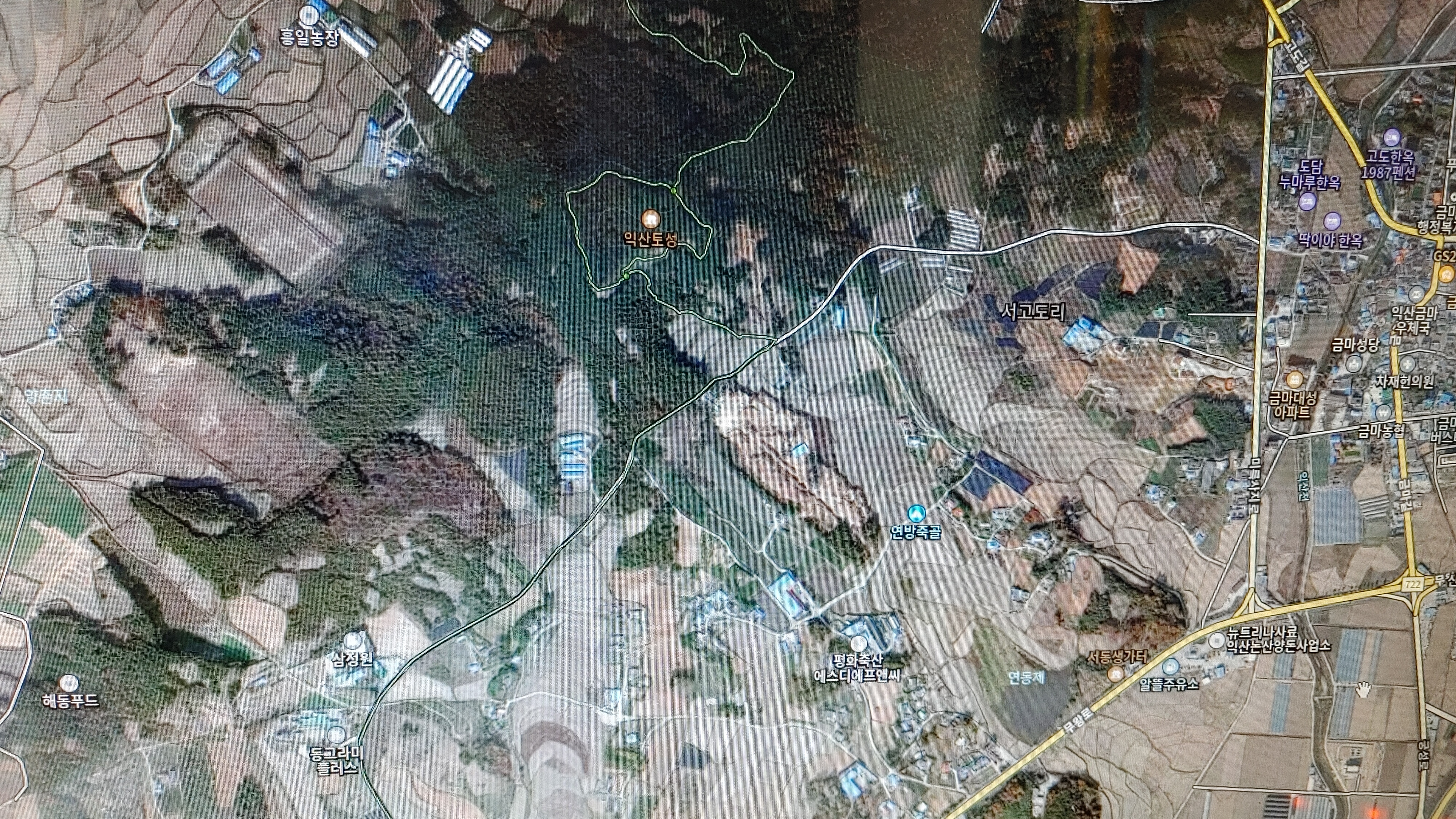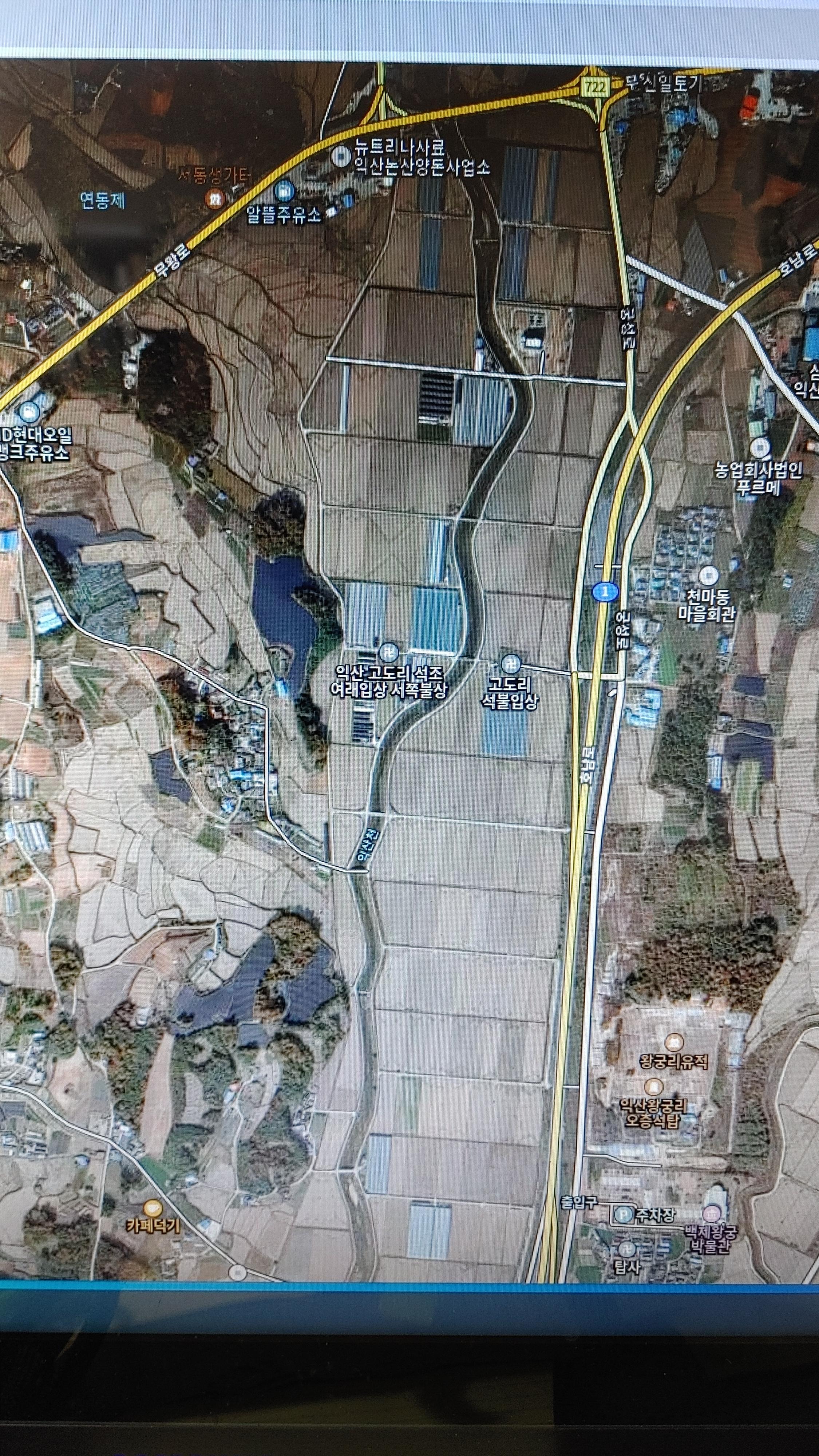 익 산 왕궁리 유적 / 발굴 결과 네모진 궁성임이 밝혀 졌다. 필자는 이 네모진 궁성으로 인하여 이 일대를 예로부터 모질메(네모진 산)라고 불렸다고 추정한 바 있다. < 마한 유민 2022 년 5월 26일 익산 왕궁리 유적의 모질메 지명에 대하여 > 이 궁성 유적이 확인 되기 이전인 일제강점기에 마한 유민의 조부께서 12마지기 밭을 소유하셨으며 이후 마한 유민의 아버지께서 물려받아 소유한 바 있다. 이 땅은 엽동 마을에 1960년 7월 이사 오신 뒤인 1964년경 매각하셨다. 이 밭 12마지기의 위치는 파란색 표시가 있는 곳(서쪽 중간쯤)이며 이 언저리에서는 백제시대 화장실 유적과 공방 터가 발굴되어 이 유적과 발굴 유물은 학계에 큰 주목을 받고 있다.